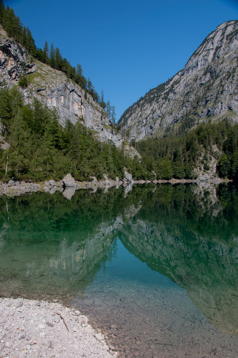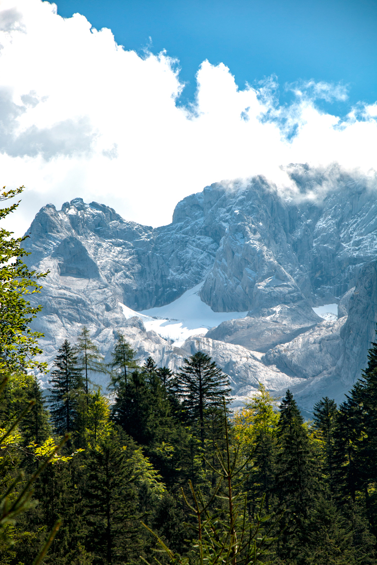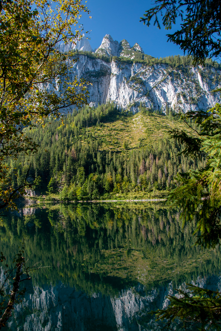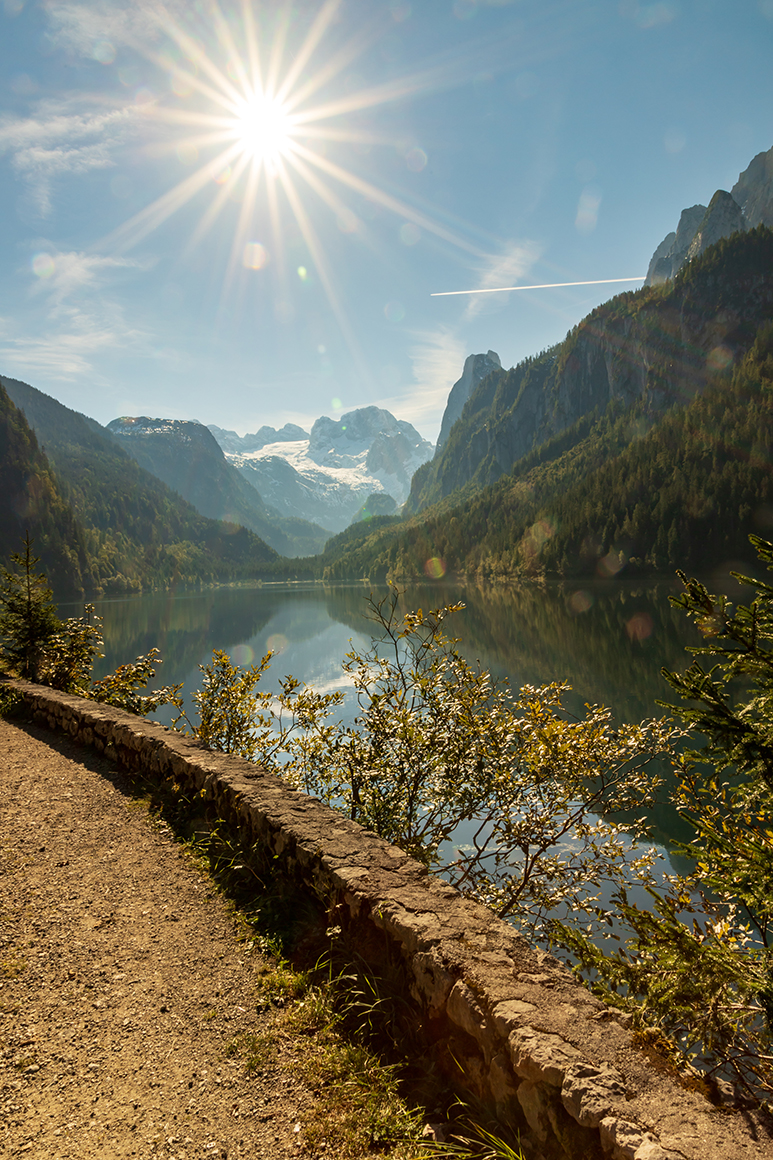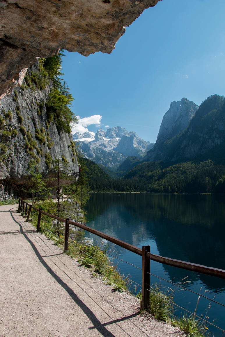 Mächtige Berge umgeben die Gosauseen. Der Dachstein und der Gosaukamm sind wohl die bekanntesten. Wer vor dem vorderen Gosausee steht, der hat einen atemberaubenden Ausblick auf den Hohen Dachstein (2996 m). Ist das Wetter klar, so kann man auch den Dachsteingletscher sehen. Der Rundweg um den vorderen See ist einfach und ohne besondere Anforderungen zu gehen. Gutes Schuhwerk ist allerdings auch hier zu empfehlen.